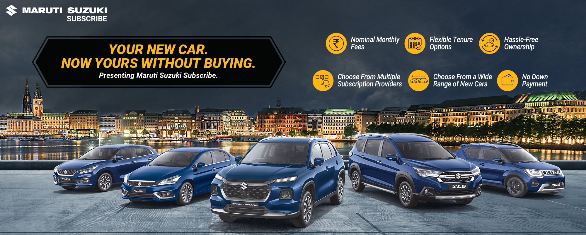 Maruti Suzuki Subscribe enables all customers to enjoy driving their preferred Maruti Suzuki cars without having to deal with all the financial responsibilities that come with owning a car.All you need to do is opt for a monthly subscription plan at a fixed monthly fee, which includes the routine maintenance and insurance costs, and choose a flexible tenure. At Wonder Cars Private Limited in, , Pune, all Hatchback, Sedan, SUV, the MUV models line-up includes Baleno, Invicto, EVitara, Jimny, Ciaz, Ignis, Fronx, Grand Vitara, XL6. Here, you will enjoy Maruti Suzuki Subscribe benefits such as: